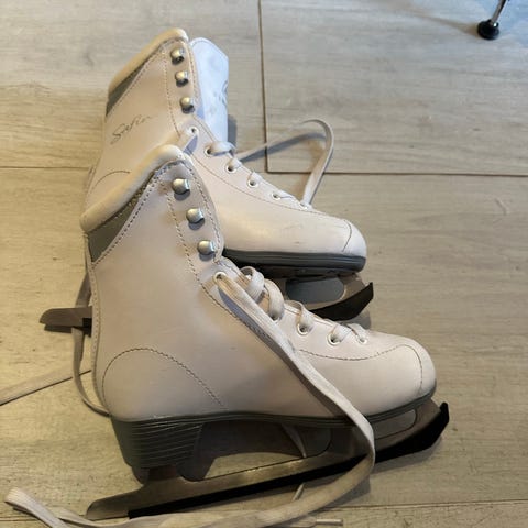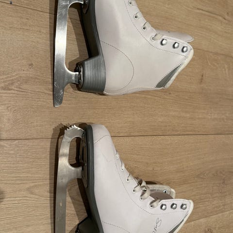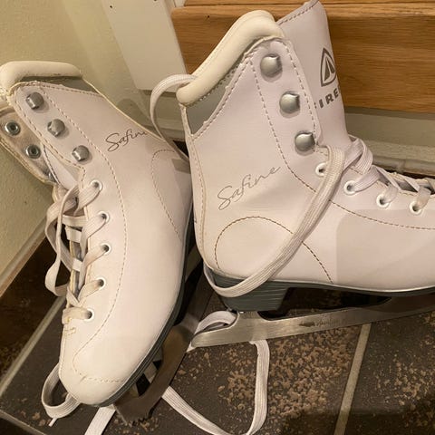 Firefly Safine Marina II W er hvite danseskøyter i størrelse 37. De er brukt kun noen få ganger og selges på grunn av de ble for små. De inneholde et ekstra par med ull såler i skøytene som er med i prisen.