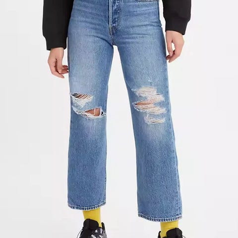 Levi's Lightweight Linen-Denim bukse i lysblå farge. Størrelse S med midjevidde W28. Laget av denim materiale. Passer for kvinner. Myke og lette jeans.