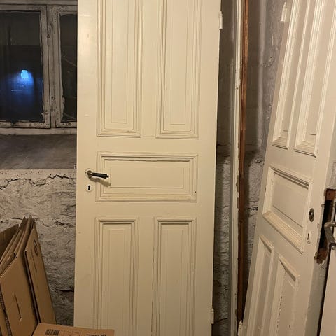 Tredør med glassvinduer. Målene er 82,5 x 204 cm. Gis bort mot henting.