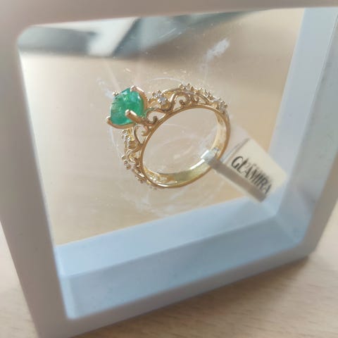 Vakker vintage gullring med blå sten, vurderes solgt.