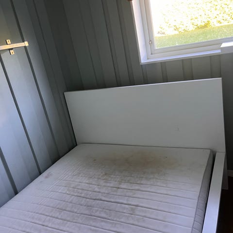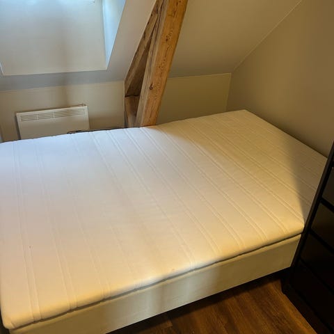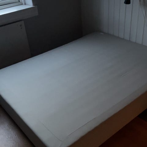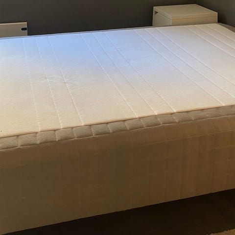 IKEA SLATTUM polstret sengestamme med Vadsö springfjærmadrass gis bort