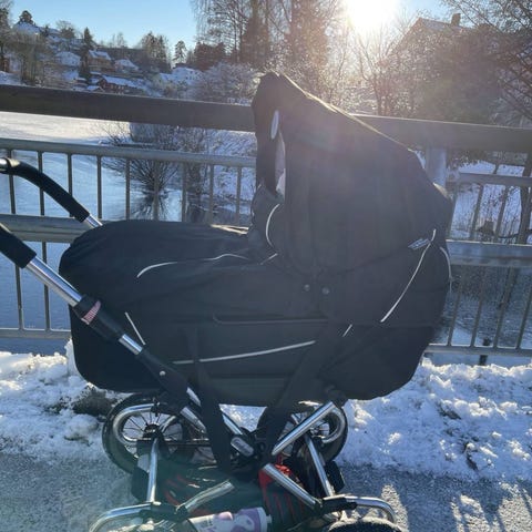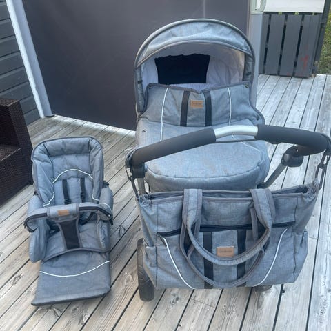 En 2-i-1 barnevogn som er robust og romslig. Manøvrerbar, svingbare forhjul.