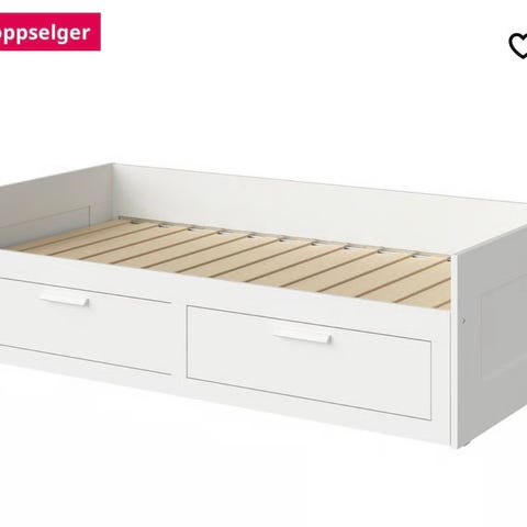 Selger brukt svart IKEA Brimnes uten bruksspor. Stått på jenterom, vært brukt i ca 2 av de 5 årene vi har hatt den. Siden bare stått i backup på garasjeloftet. Selges uten madrass. Jeg kan demontere, men hentes her. Egentlig fordel at kjøper er med og demonterer for å få litt oversikt over hvordan den sitter sammen. Nypris fra IKEA 2995,-.