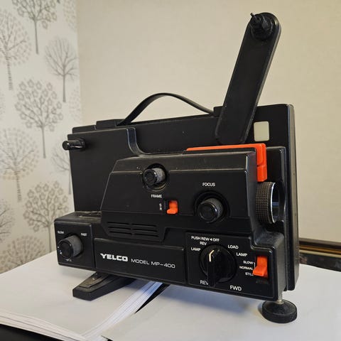 Inkluderer: 3 ruller for 135 og 120, en tank, vekter, en pakke Ilford ID-11 (usikker om dato), og en mørkeromspose (changing bag) for håndtering av film og spoler. Selges sammlet.