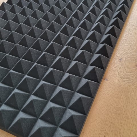 AcouFoam 30x30x5cm Dem tilbyr open-cell-egenskaper som er ideelle for lyddemping. Pyramidedesignet forstørrer overflateområdet og forbedrer absorbering, hvilket gjør dette til et flott alternativ for bruk hjemme og i profesjonelle studioer.
