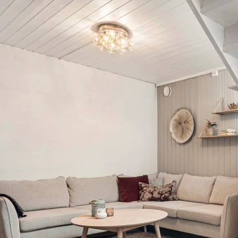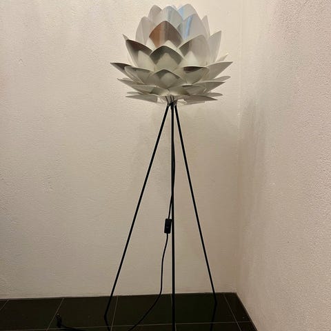 Flott og stor taklampe fra By Rydéns selges. Modell Planet. Har vært montert én gang og er nå demontert. Platene er hvite.