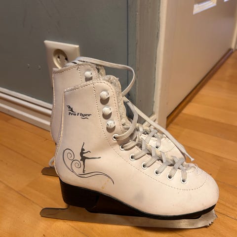 Pent brukte kunstløpskøyter i størrelse 32.