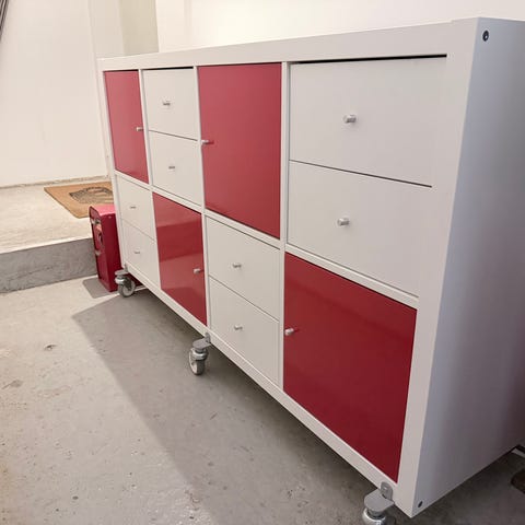 Trillebord med en låsbar skuff og to hyller.