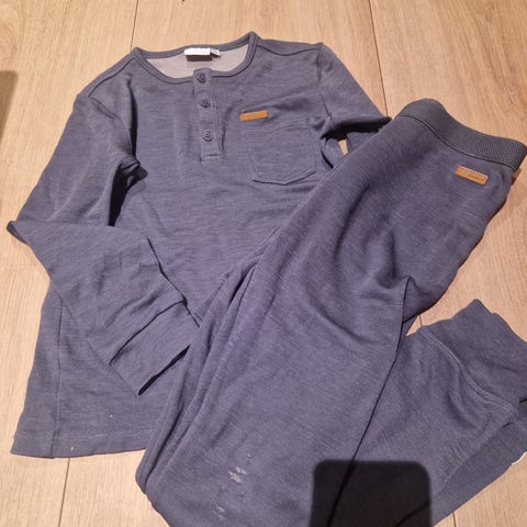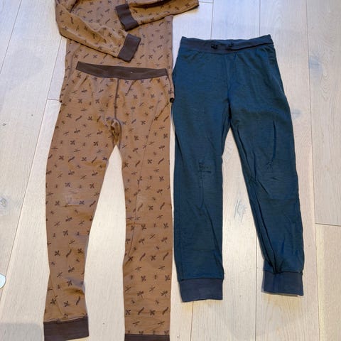 Størrelsen 134-140. Merinoull med viskose og bambus innside. En overdel og to longs.