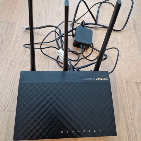 Asus AC3200 router med flere antenner for trådløs nettverkstilkobling. Utstyrt med flere Ethernet-porter for kablet tilkobling. Strømadapter inkludert. Pent brukt i et par år før jeg nå har fått et annet system og denne er overflødig.