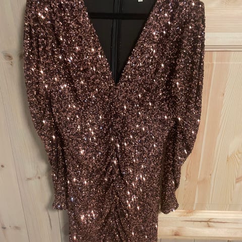 Bringefarger og litt «glitter» penkjole (med for). Passer for en str 38-40.
