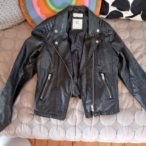 Skinnjakke fra H&M for jente. Farge beige. Størrelse 158 (12-13 år). Jakken er laget av skinnmateriale og har en stil som passer til ulike anledninger 🤩