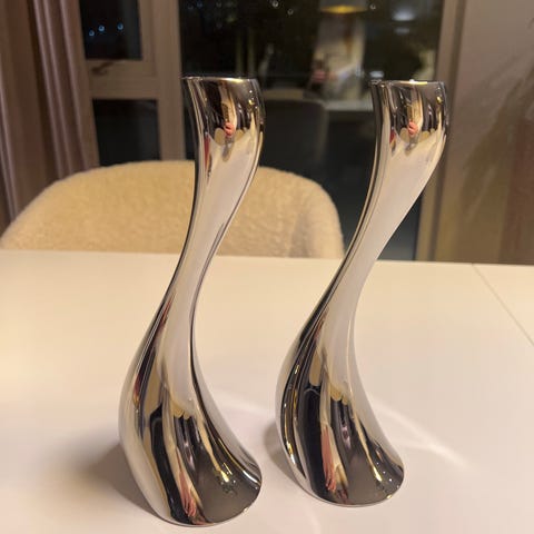 Georg Jensen Cobra lysestaker i blankpolert stål 20 cm høye. Pent brukt, hele og pene.