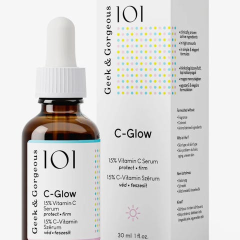 Drunk Elephant C-Bright Rad Drops serum i 30 ml emballasje. Produktet er formulert for hudpleie med fokus på å forbedre hudens utseende.