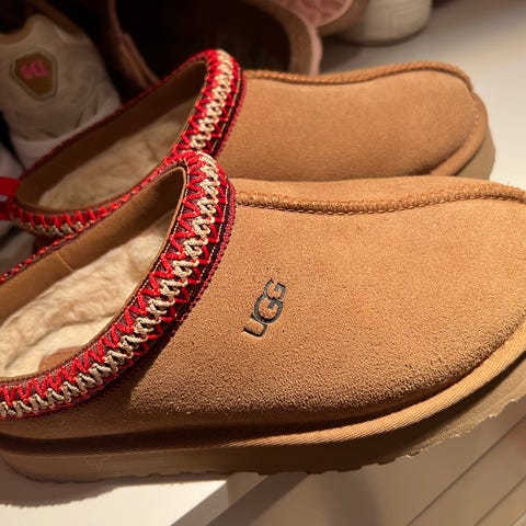 UGG tøfler Tasman i størrelse 37 med brun farge. Materialet er mykt og komfortabelt. Heilt ny, selges pga for liten størrelse.