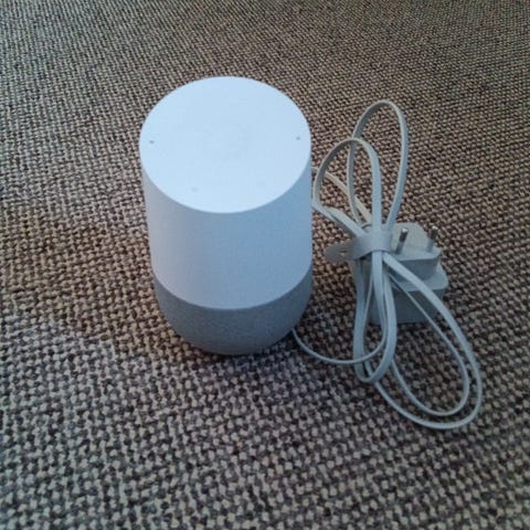 En diskre google assistent høyttaler som aktiveres med stemmen for å utføre ulike oppgaver som f.eks. å sjekke kalender, værmelding, sette på musikk, sjekke fakta osv.