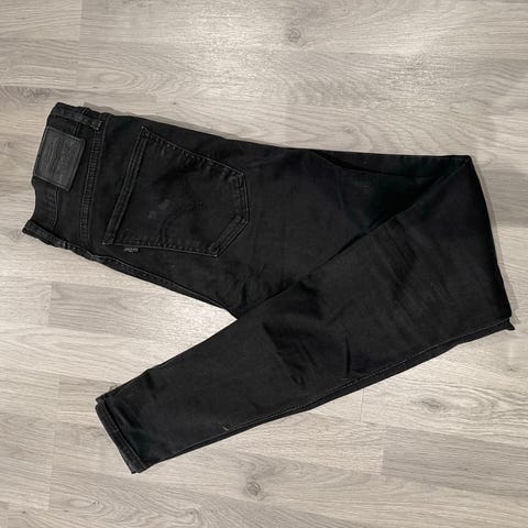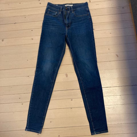 Levi's Mile High Super Skinny jeans i svart farge, lengde 32 med midje W28. Laget av bomullsmateriale. Designet for kvinner. Sitter veldig pent på og høy i livet. Brukt noen få ganger da den ble litt for trang for meg. Ny pris var ca 1400