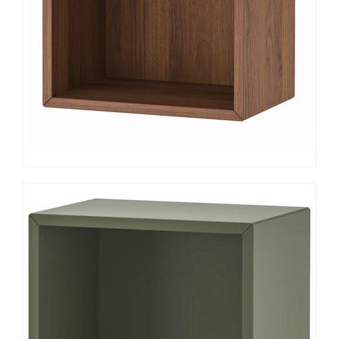 Eket vegghylle ferdig montert for vegg. Må kjøpe til veggskinne for feste på vegg.