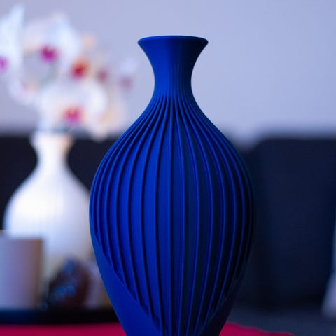 Vasene er laget i PLA, biobasert materiale fremstilt av fornybare råvarer med en matt finish som gir et rent og moderne preg. Enkle å flytte på og står stødig på flate underlag.