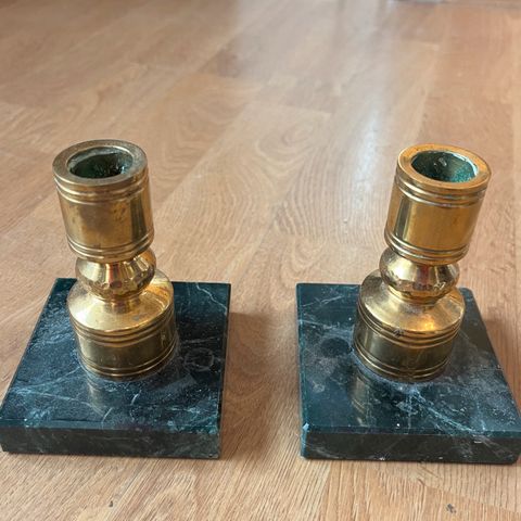 Vintage messing lysestake på marmorsokkel – ca. 1920–40.