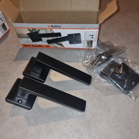 4 stk helt nye håndtak fra beslag design i børstet messing selges samlet kr 200,- pr stk. 160 mm lange.