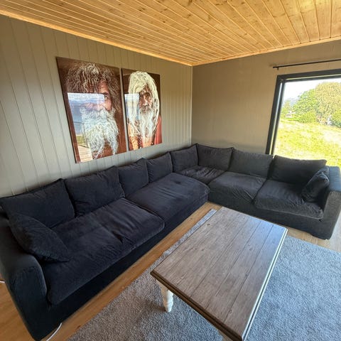 Sofaen kan deles i 3 deler og er lett å frakte, kan og være behjelpelig med frakt for riktig pris