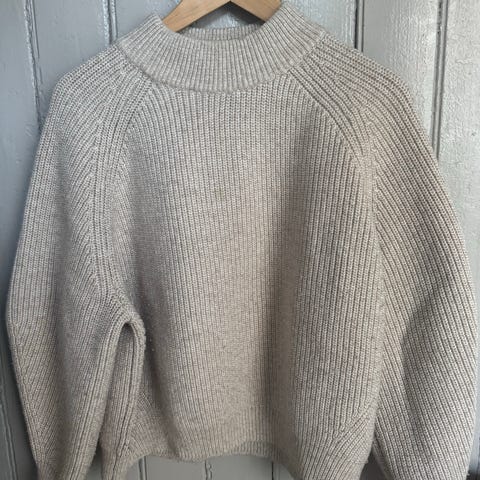Stay finstrikket kort genser, str S. Gensern har en lys lilla farge, litt vanskelig å få den frem på bildene. Gensern er brukt, noe nupper men ellers i fin stand.