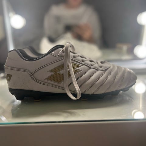 Lotto fotballsko i størrelse 32. Skoene er svarte med gule detaljer og har knotter under sålen for bedre grep på gressbaner. Laget i syntetisk materiale.