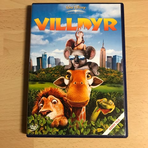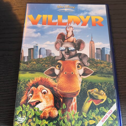 Disney Villdyr DVD film i norsk utgave. Inneholder animasjonsfilm med norsk tekst og lyd. Passer for alle aldre, med underholdende dyrehistorie. DVD-format.