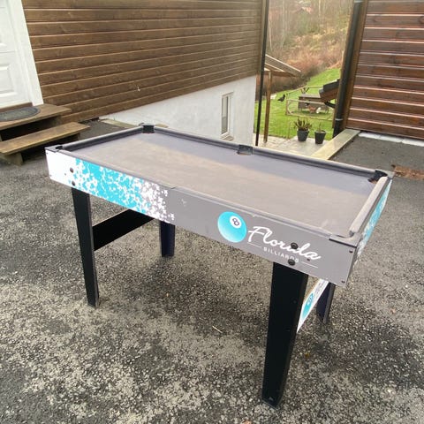 Biljardbord med grønn filt og ramme i tre. Perfekt størrelse for hjemmebruk - 1 meter x 1,80 meter.