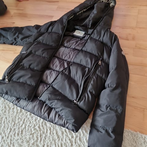 Moncler Annet yttertøy i størrelse M for kvinner. Jakken er svart og laget av nylon. Den har en lang modell med hette og pelskant. Egnet for utendørs bruk.