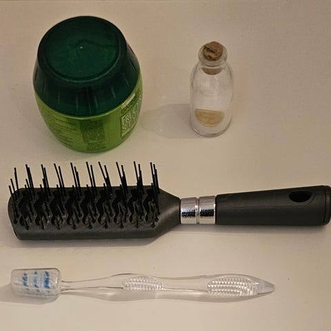 Bronzer, sminkekost, toalettveske og andre ting