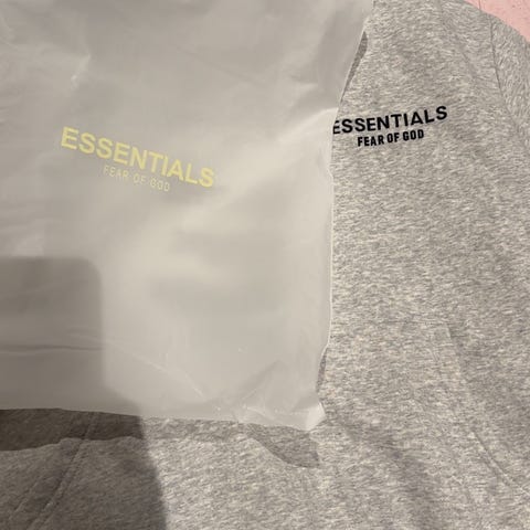 Essentials genser i størrelse S for herre. Genseren er grå og laget av cotton-materiale. Passer til hverdagsbruk og gir komfort med sitt myke stoff. Støtter ps plus jeg sparer opp til. Mamma og pappa sier nei