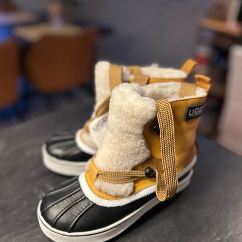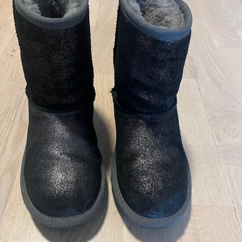 UGG barnesko for unisex i størrelse 35. Skoene er svarte og laget av materialer som gir komfort og varme.