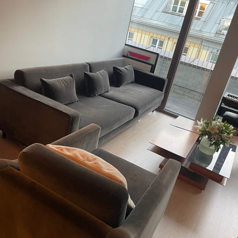 Selger nesten ny sofa kjøpt fra Skeidar for 2 år siden. Den er bestilt med spesial bestilling av antall seter og plass. Kjøpt fra Skeidar for 43 000kr, selges pga flytting til 27 500. Pris kan diskuteres ved rask handel. Hentes fra Oslo - ved bryn senter Østensjø.