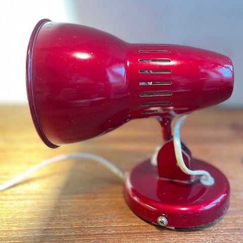 Flott rød bordlampe fra 70 tallet, norsk design av Jac Jacobsen.