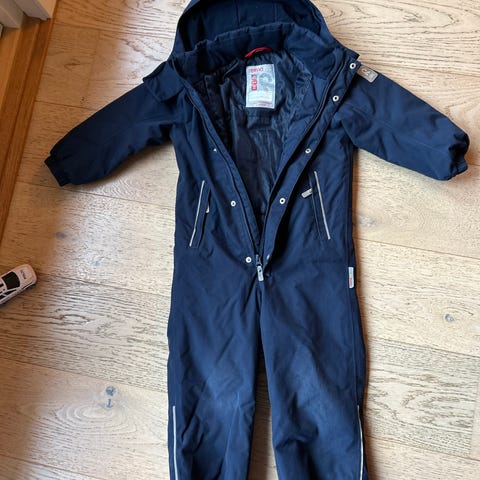 Reima Stavanger dress unisex barn i størrelse 104, blå farge. Dressen er designet for å gi beskyttelse mot vær og vind, egnet for utendørs bruk. Såvidt litt slitasje på venstre kne, men ikke noe som vil påvirke bruk tror jeg.