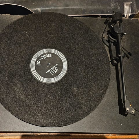 Det er ettermontert en audio technica AT-VM95C som er ny og original pickup kan følge med brukt max100 timer.