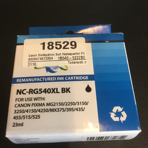 Det følger med 5 blekkpatroner som ikke er åpnet (de som er i printeren tror jeg har tørket ut).