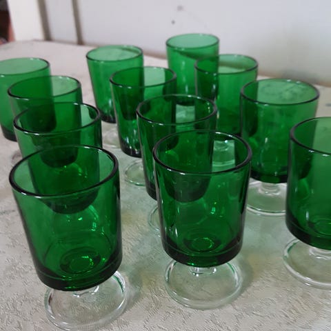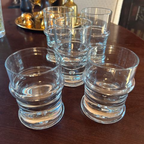 Vintage sett med "Weekend" whiskyglass fra Kastrup-Holmegaard i Danmark, produsert i Belgia.
