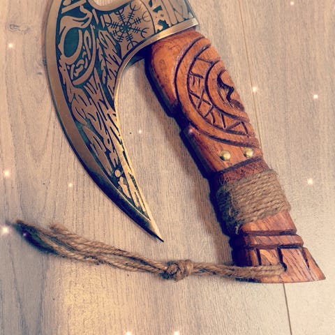 det Kan være litt forskjell i størelse fordi øks er håndlaget og kan vøre noe litt plus minus