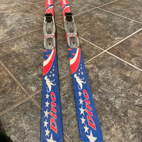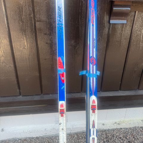 Fischer ski 120 cm, smørefrie. Kjøpt brukt. Har en del riper. Bindingene er veldig fine og helt uten rust.