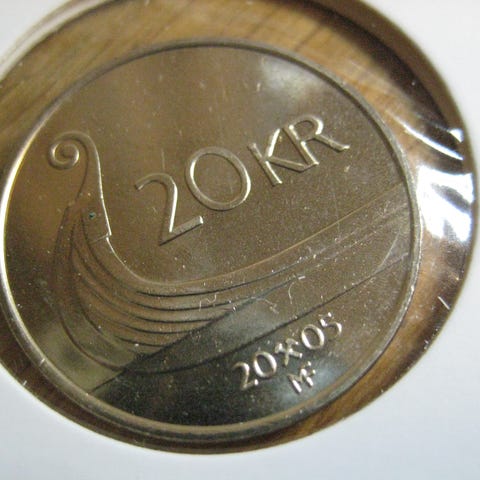 Selger her 20 kr mynt 2008 i kv 0 montert i hartberger med hanske katalogverdi 50kr
