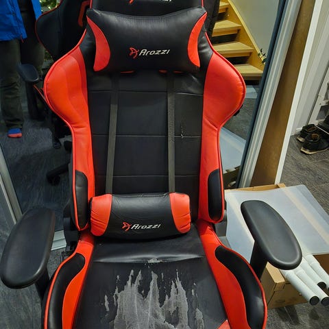 Gir bort min gamingstol mot en plate sjokkis;) Veldig godt brukt, men justeringen i ryggen funker samt justering opp og ned i høyden. Hjulene funker også. Bryr du deg ikke om utseende så er det mye stol igjen. Nypris 3699,-
