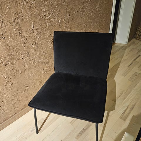 Svart spisebordstol i fløyel. Selger 2 stk. Må hentes av kjøper.