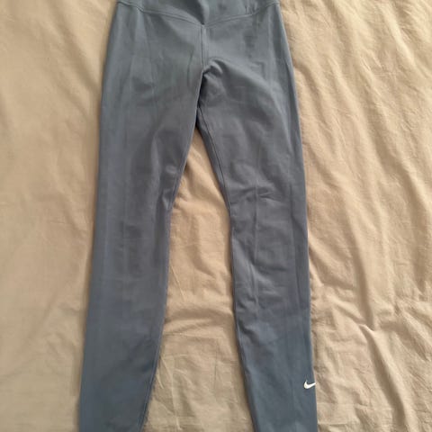 Nike Dri-FIT treningstights for dame i størrelse XS. Tightsen er laget av 78% polyester og 22% spandex, med fukttransporterende Dri-FIT-teknologi. Fargen er svart, og plagget er designet for fitnessaktiviteter.