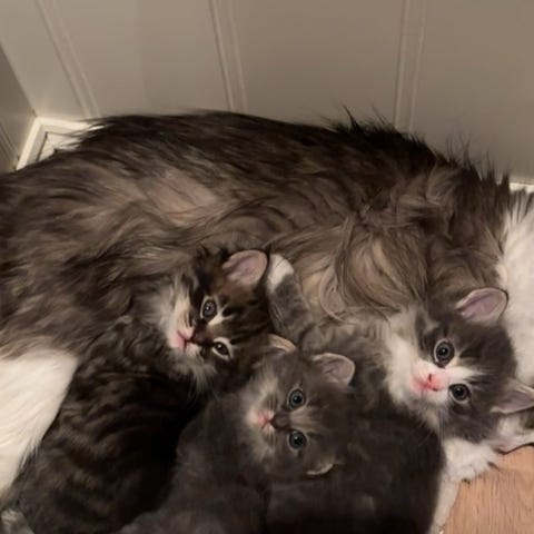 Mor er frisk og fin, går til jevnlige helsesjekker og har fått alle nødvendige vaksiner. Jeg har god erfaring med kattunger gjennom oppvekst og tidligere kull, og dette kullet har fått tett og god oppfølging fra start.