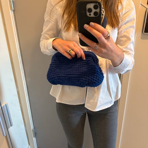 Clutch med glidelås og for i «silkestoff» med innsydd liten innerlomme.