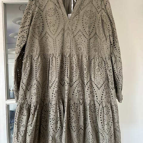 Utrolig fin kjole i farge vetiver (fremstår som en lys, pen grønnfarge). Lappen er fortsatt på. Selges kun fordi den ikke har blitt brukt og jeg må frigjøre plass.