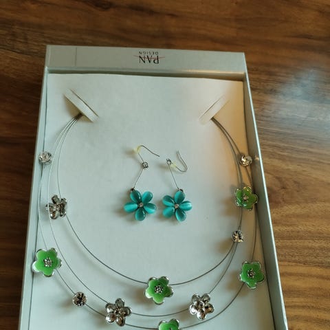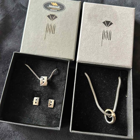 Smykke og øredobber i sølv fra PAN. Aldri brukt annet enn for å ta bilde. Kommer i original eske, og med byttelapp fra 2015😅